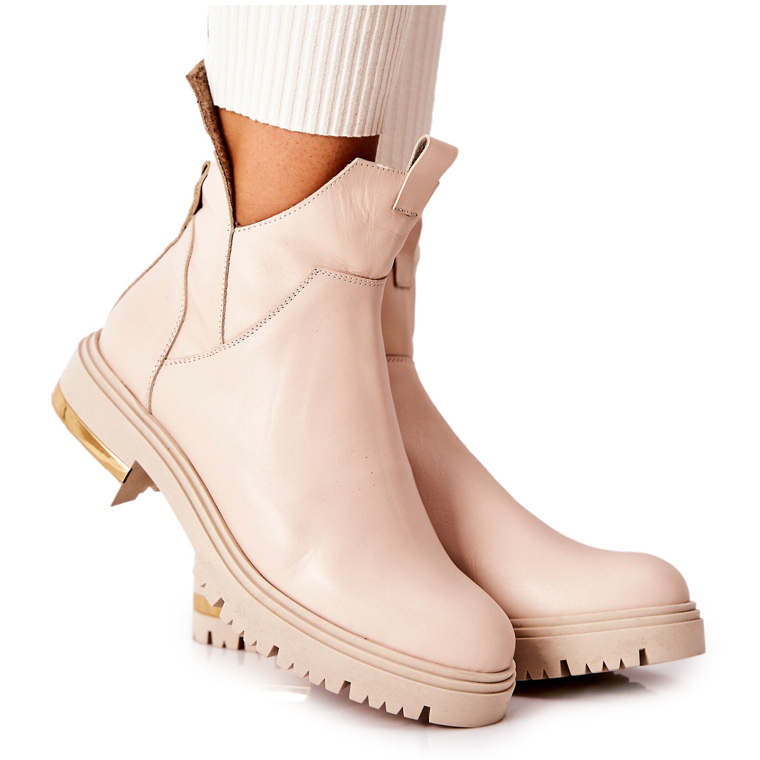 ## Botas isoladas de couro PA2 com recorte - Beige Tanya