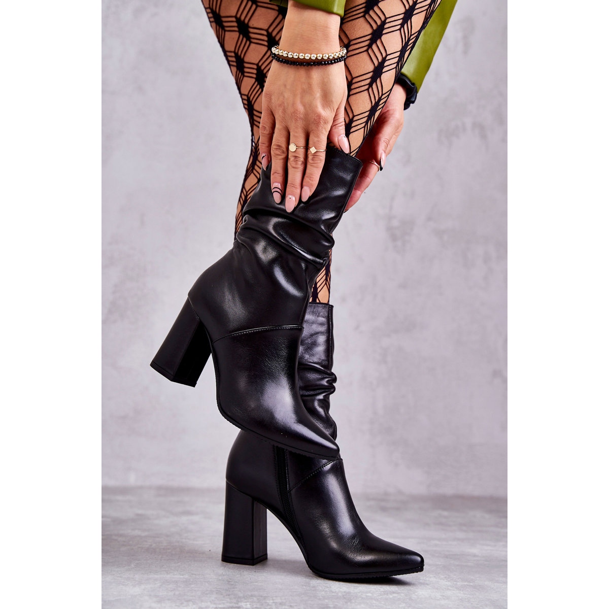 A altura do salto de 8,5 cm vai enfatizar a sua figura, e a clássica cor preta faz com que as botas se encaixem perfeitamente em qualquer estilo - tanto do dia a dia quanto elegante. Parâmetros adicionais, como altura superior de 21 cm e largura superior de 14,5 cm, tornam este modelo não apenas atraente, mas também confortável.