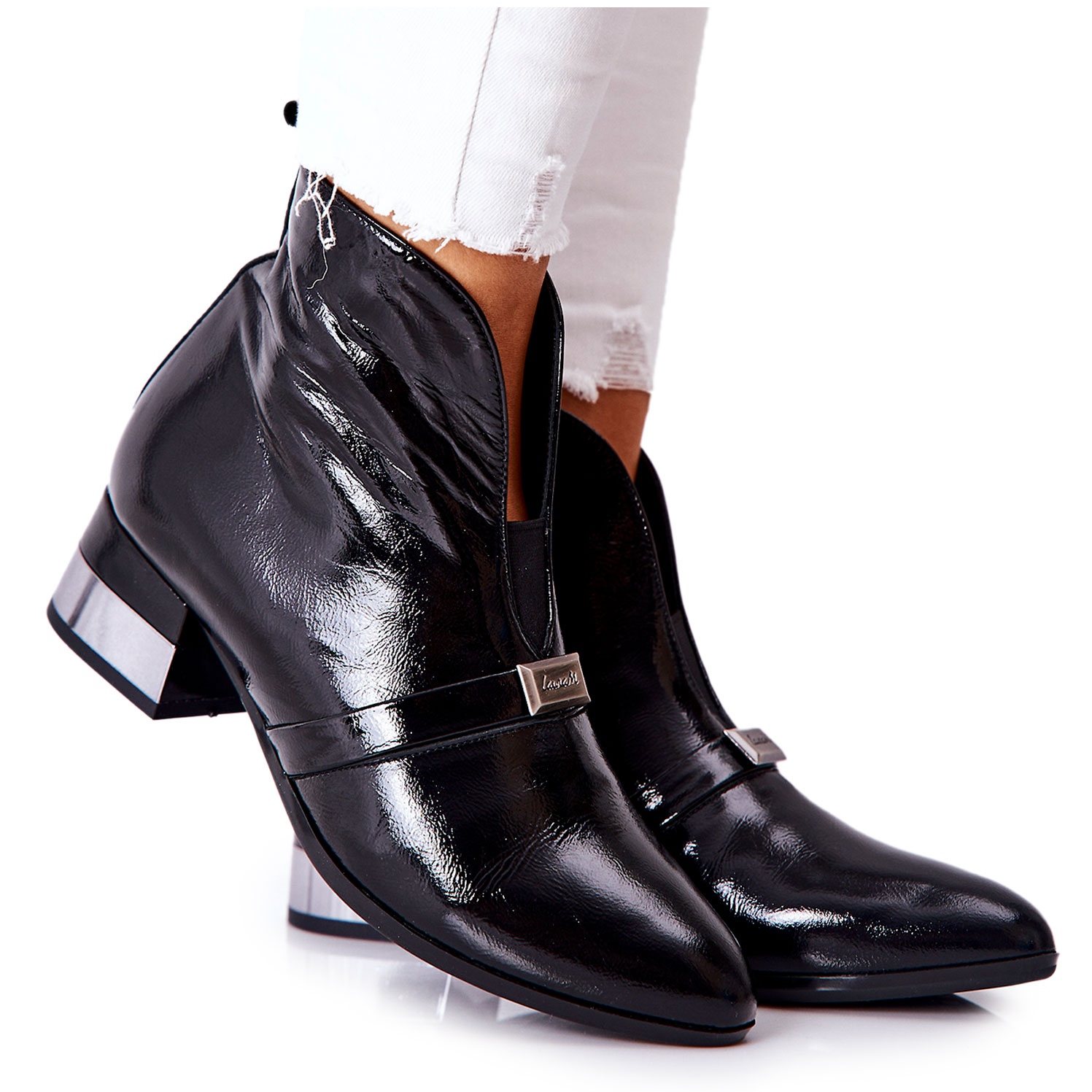 **Botim de couro com salto alto Laura Messi Preto 2268**