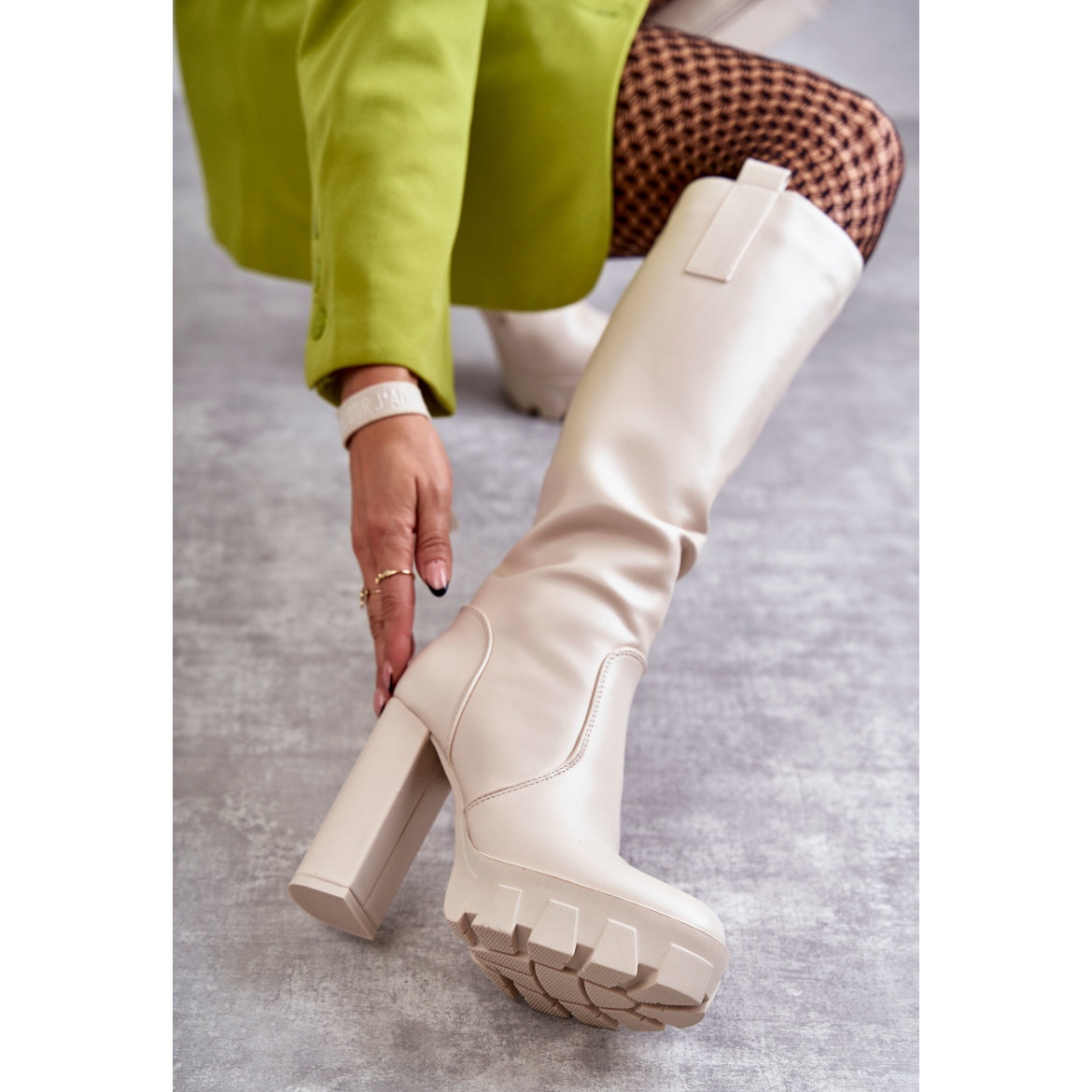 WS1 Botas elegantes com plataforma de couro ecológico Bege Isabell - Sinônimo de elegância e senso ecológico