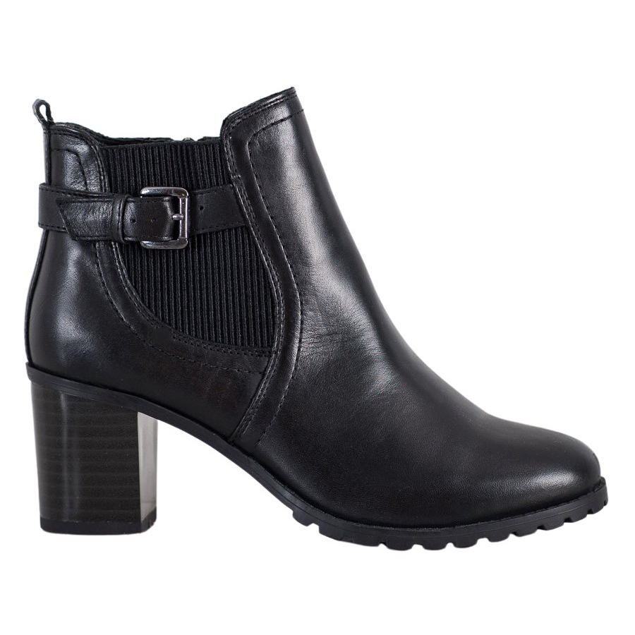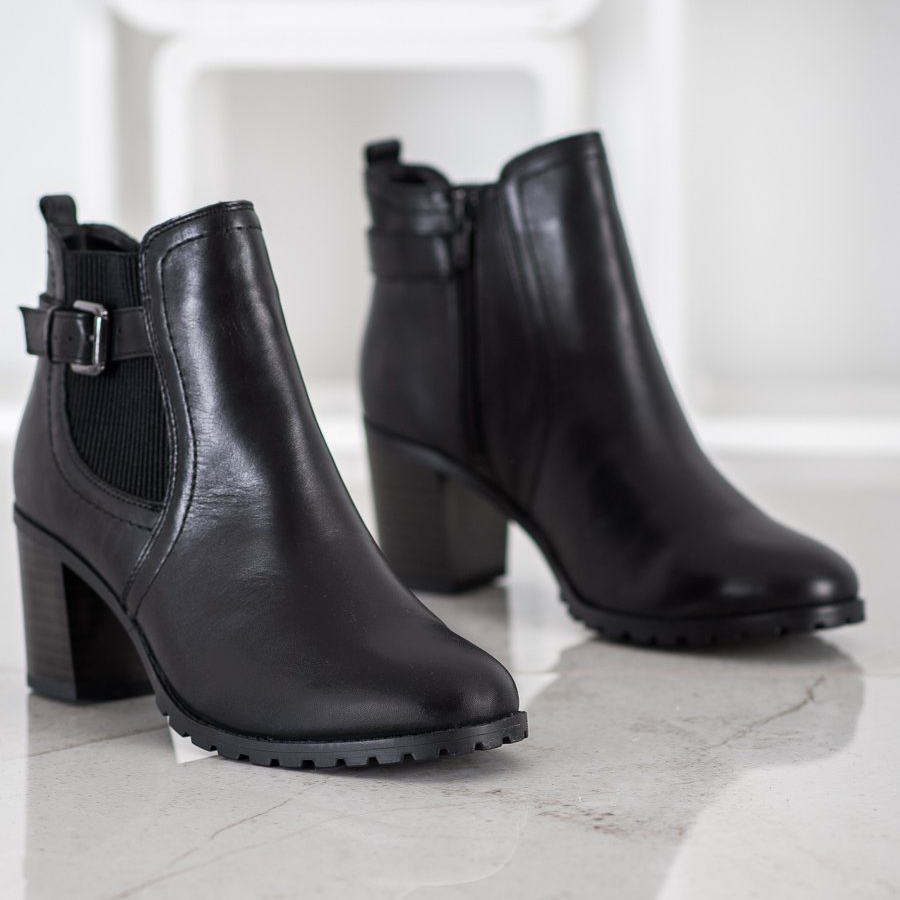 Confeccionados em couro natural, os botins proporcionam não só excelente qualidade, mas também um visual elegante. A biqueira redonda e o salto de 7 centímetros em forma de bloco garantem estabilidade e conforto de uso, e o salto reforçado confere confiança aos seus passos. O isolamento interno quente torna as botas perfeitas para os dias mais frios, e o material têxtil no interior aumenta o conforto de uso.