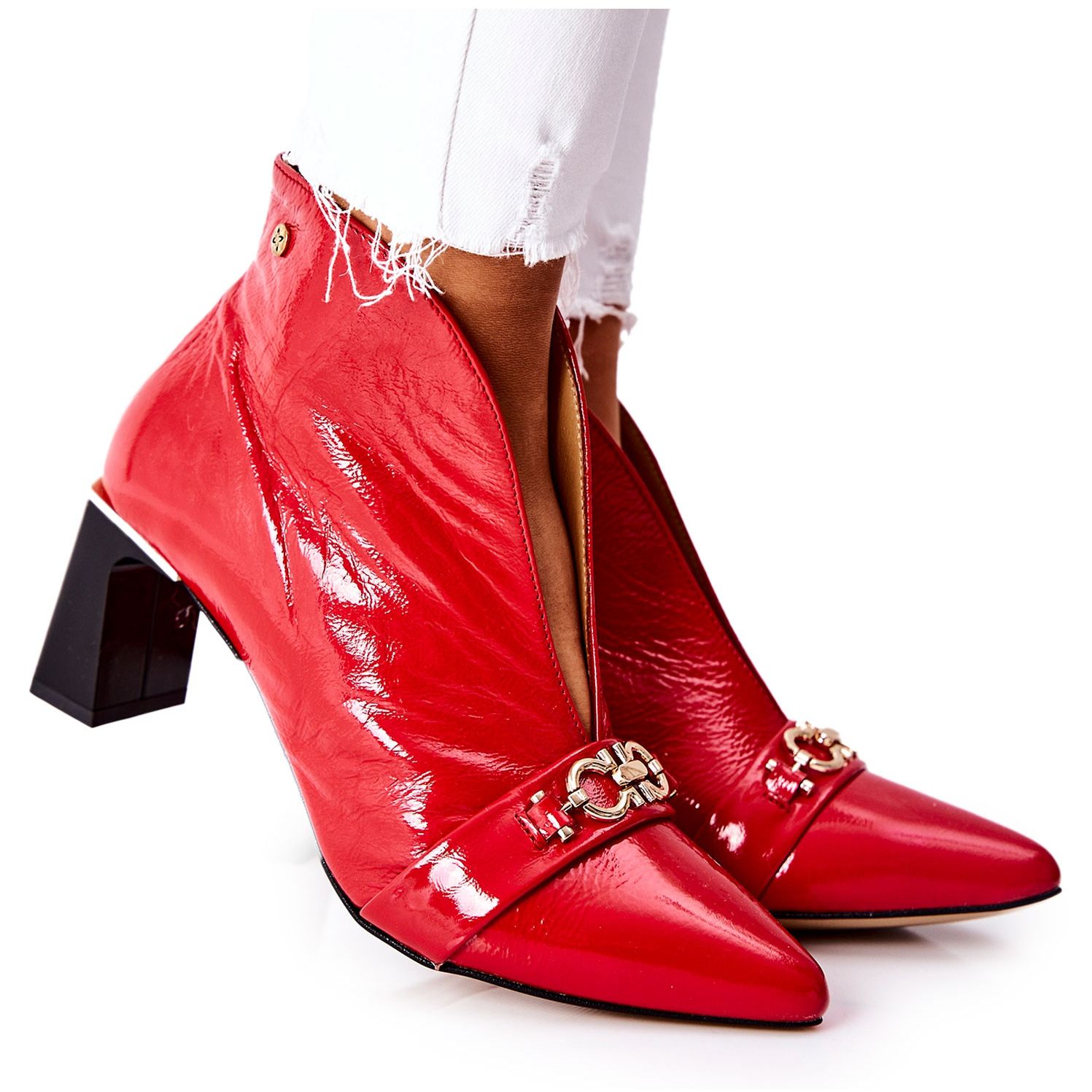 Detalhes: Botas de couro em um post Maciejka Red 05262-08 vermelho