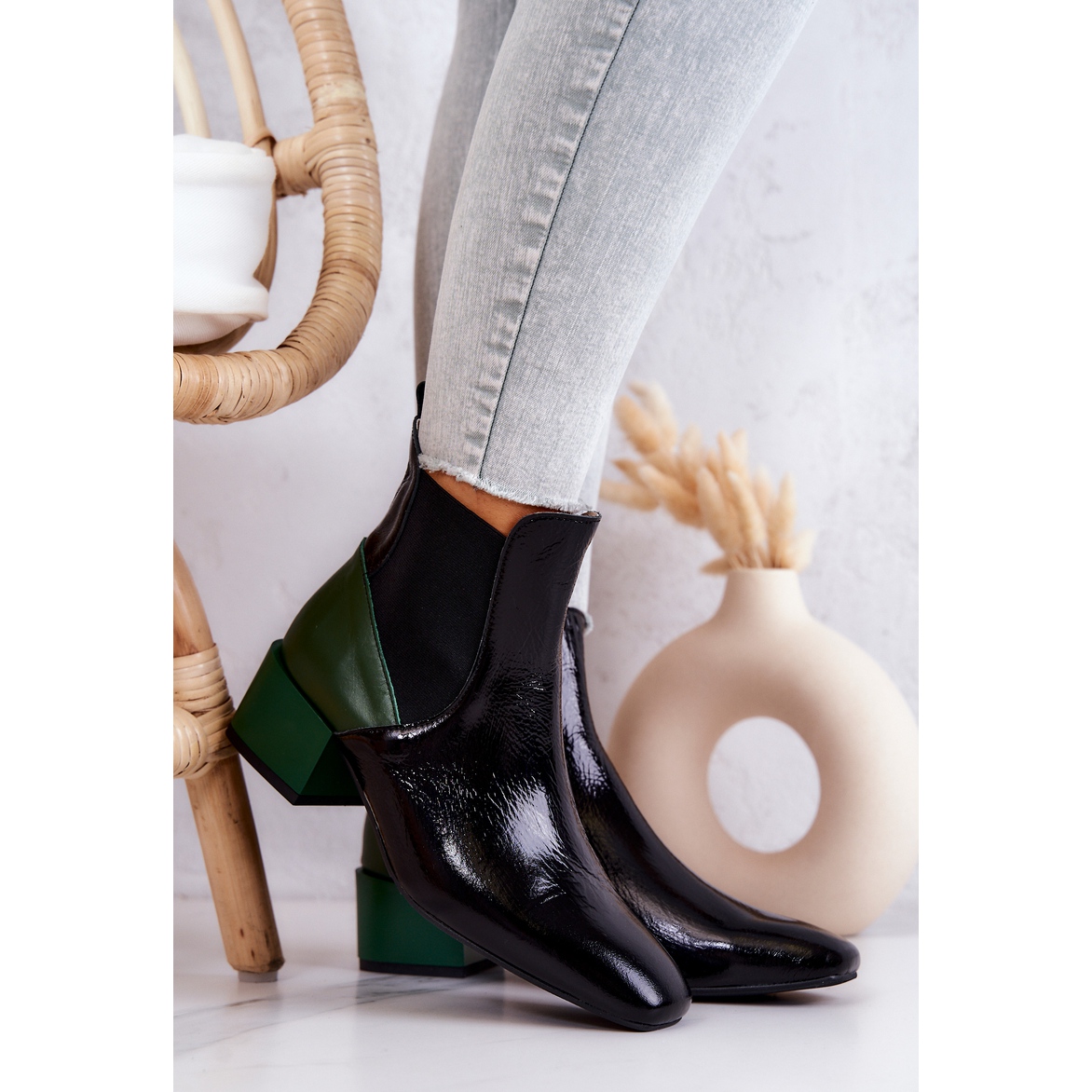 Descubra o estilo clássico com um toque moderno graças aos botins de salto alto em couro PA2 da Kailey em preto e verde. Estas botas elegantes e estilosas são confeccionadas em couro natural, o que não só garante um visual lindo, mas também conforto de uso.