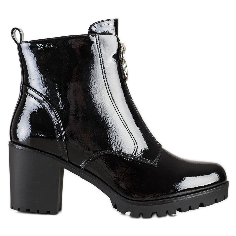 Os botins de salto alto envernizados do fabricante Bestelle são a escolha perfeita para mulheres que desejam aliar conforto a um estilo único. Estas elegantes botas pretas são confeccionadas em couro ecológico de alta qualidade, o que as torna não só elegantes, mas também amigas do ambiente.