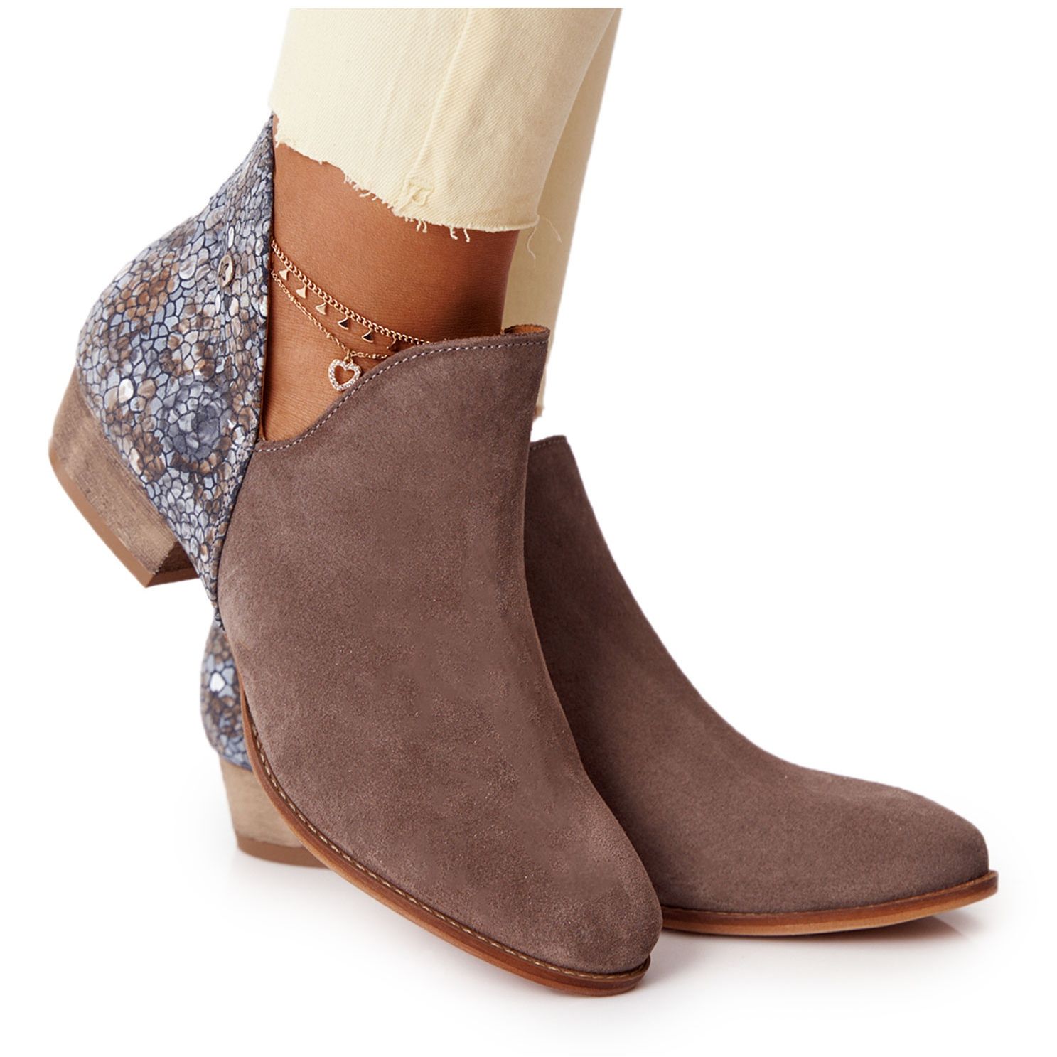 Maciejka Botas de couro femininas Maciejka Dark Beige 04091-65 bege