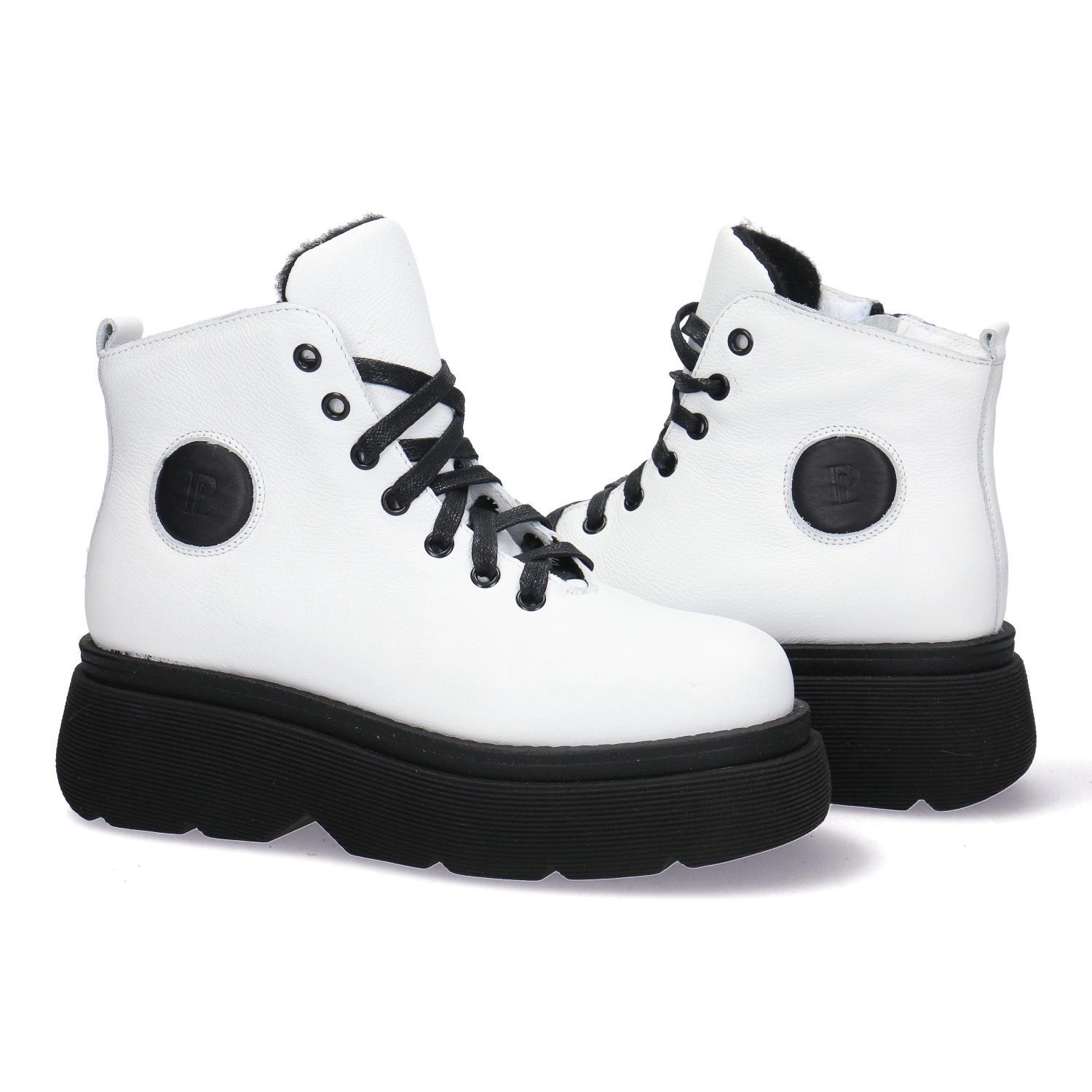 KOMODO KOMODO Botas de couro feminino em uma grossa Pollonus White 5-1567-004 branco
