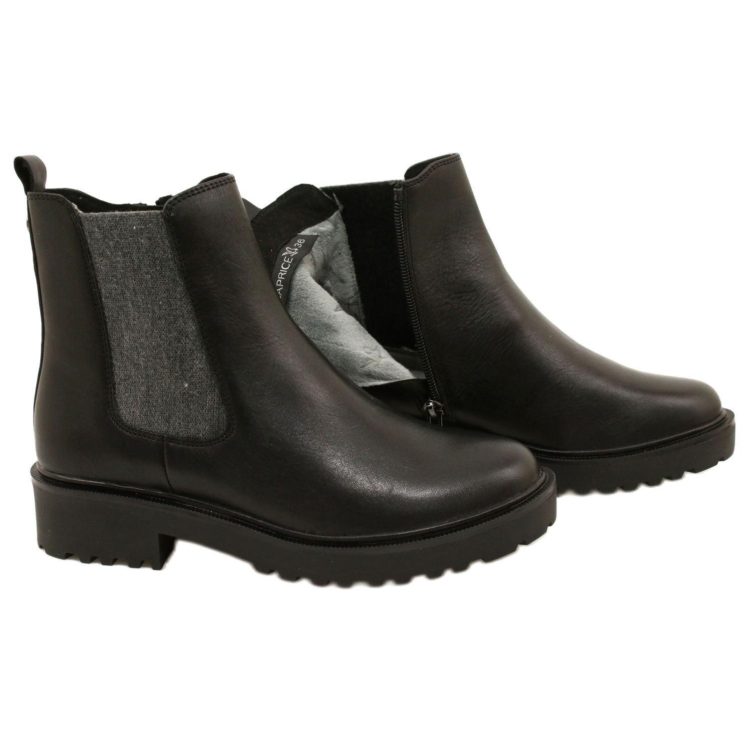 Detalhes: Caprice Botas de couro feminino no capricho mais grosso 9-25419-41 022 Black preto