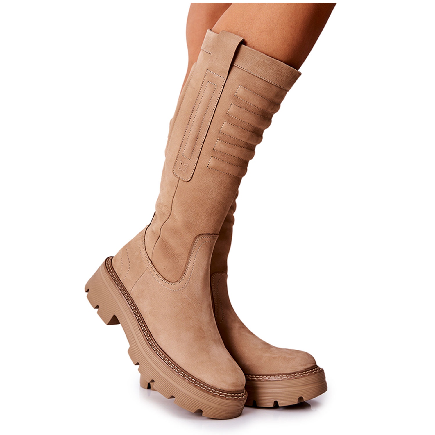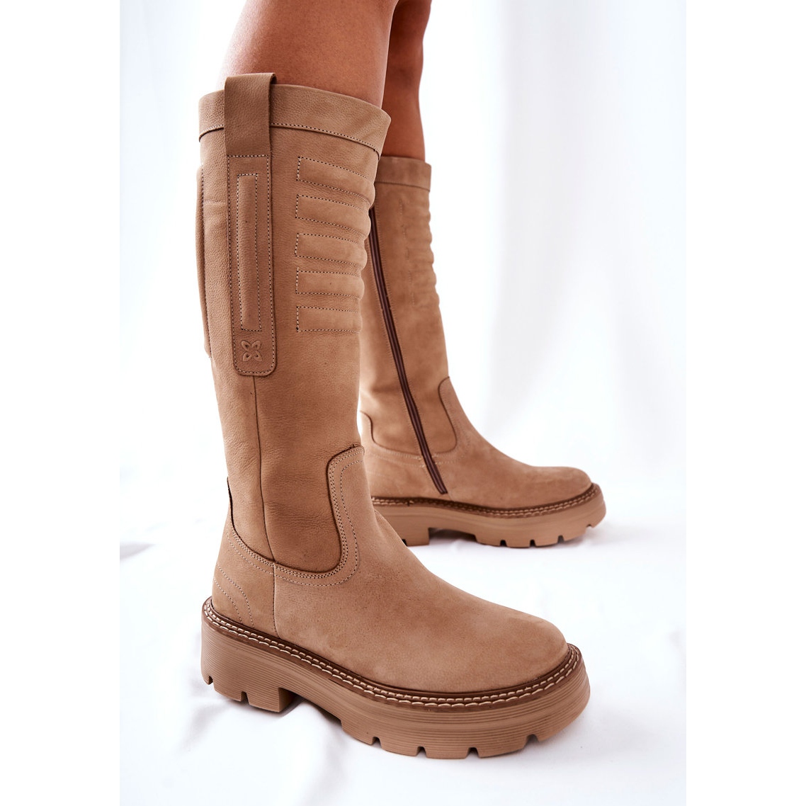 Seu corte clássico com cano de 35,5 cm de altura enfatiza perfeitamente a figura, e a sola maciça e segura garante estabilidade a cada passo. Uma vantagem adicional é o zíper que percorre todo o comprimento do cabedal, o que facilita a colocação e a retirada do calçado. As botas têm biqueira redonda, o que lhes confere um carácter elegante mas confortável.