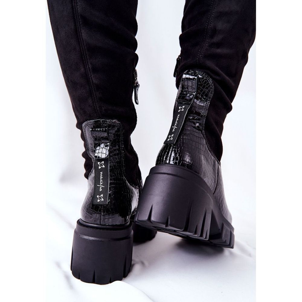 Detalhes: Botas de couro Maciejka Krokodyl Black 05260-01 preto
