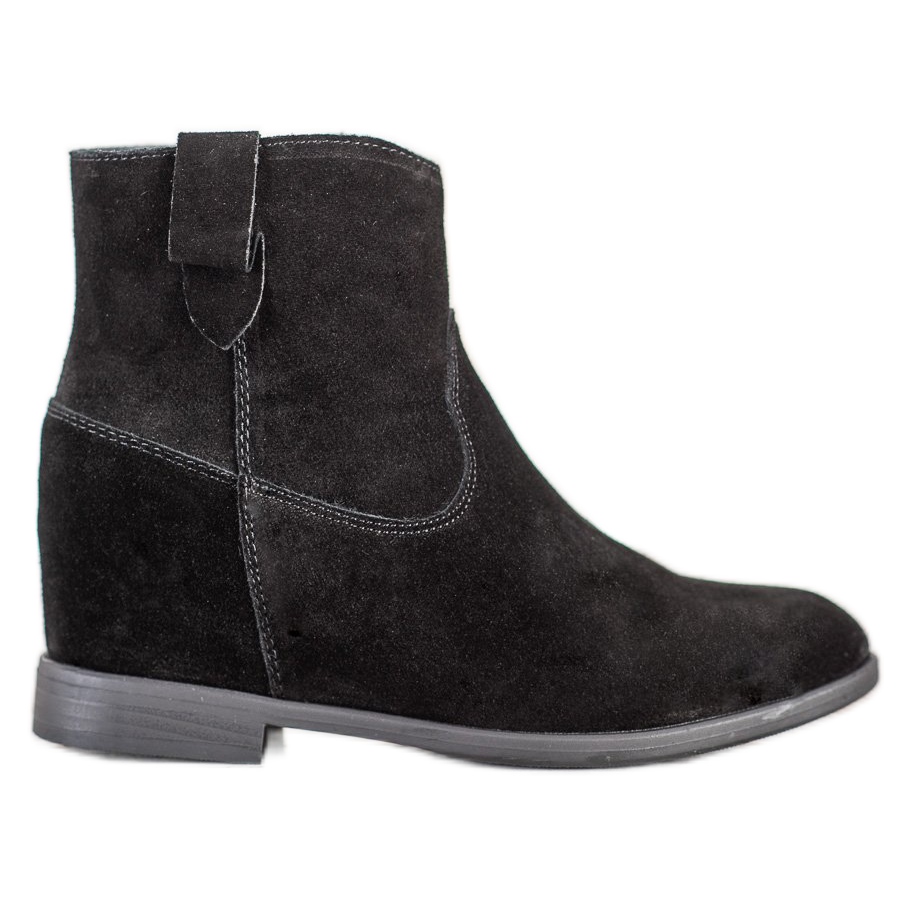 Graças à biqueira redonda e ao salto macio integrado, estes sapatos proporcionam o máximo conforto de uso. A cunha alta de 8 cm destaca perfeitamente a figura e a sola sintética lisa oferece estabilidade a cada passo. As botas também possuem isolamento, o que as torna a escolha ideal para o outono-inverno.