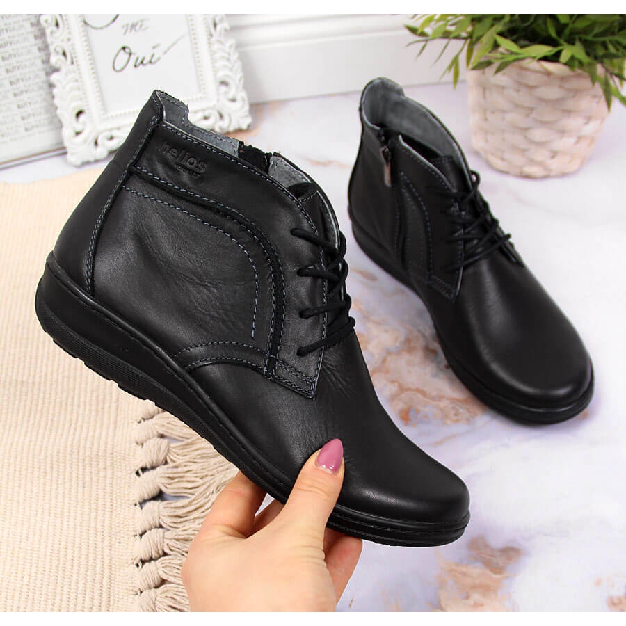 Descubra conforto e estilo incomparáveis escolhendo botins de couro com isolamento preto Helios 612-2. Este modelo único combina qualidade de produção polaca e design moderno que certamente irá agradar a todas as mulheres. Graças ao cadarço e ao prático zíper, calçar e tirar o calçado torna-se extremamente fácil e confortável.