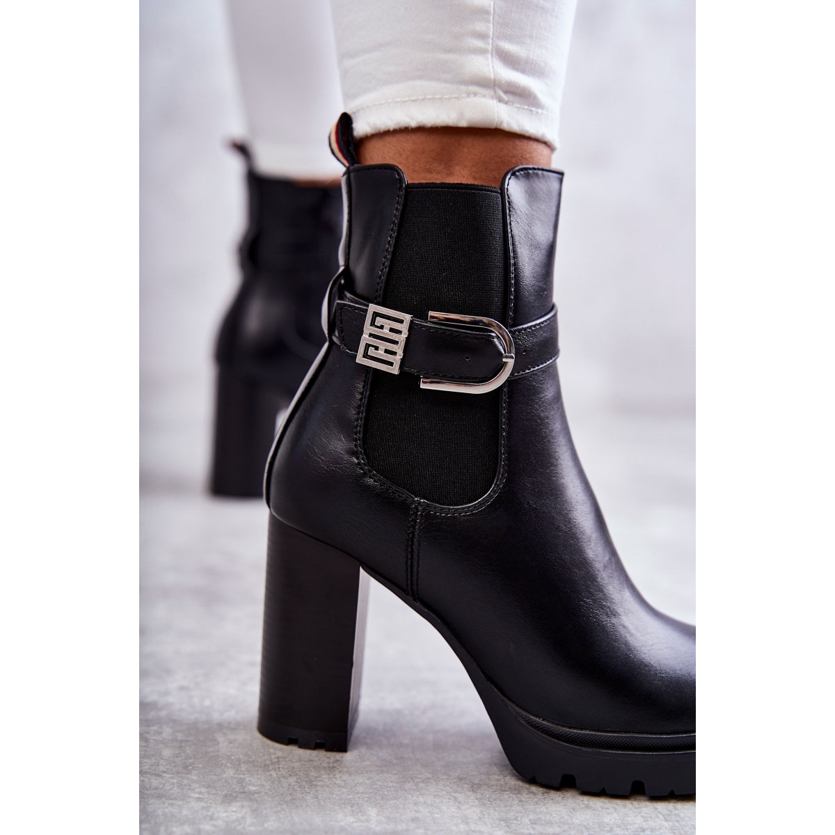 FE1 FE1 Botas de couro pretas Maresol em poste com cinto decorativo preto