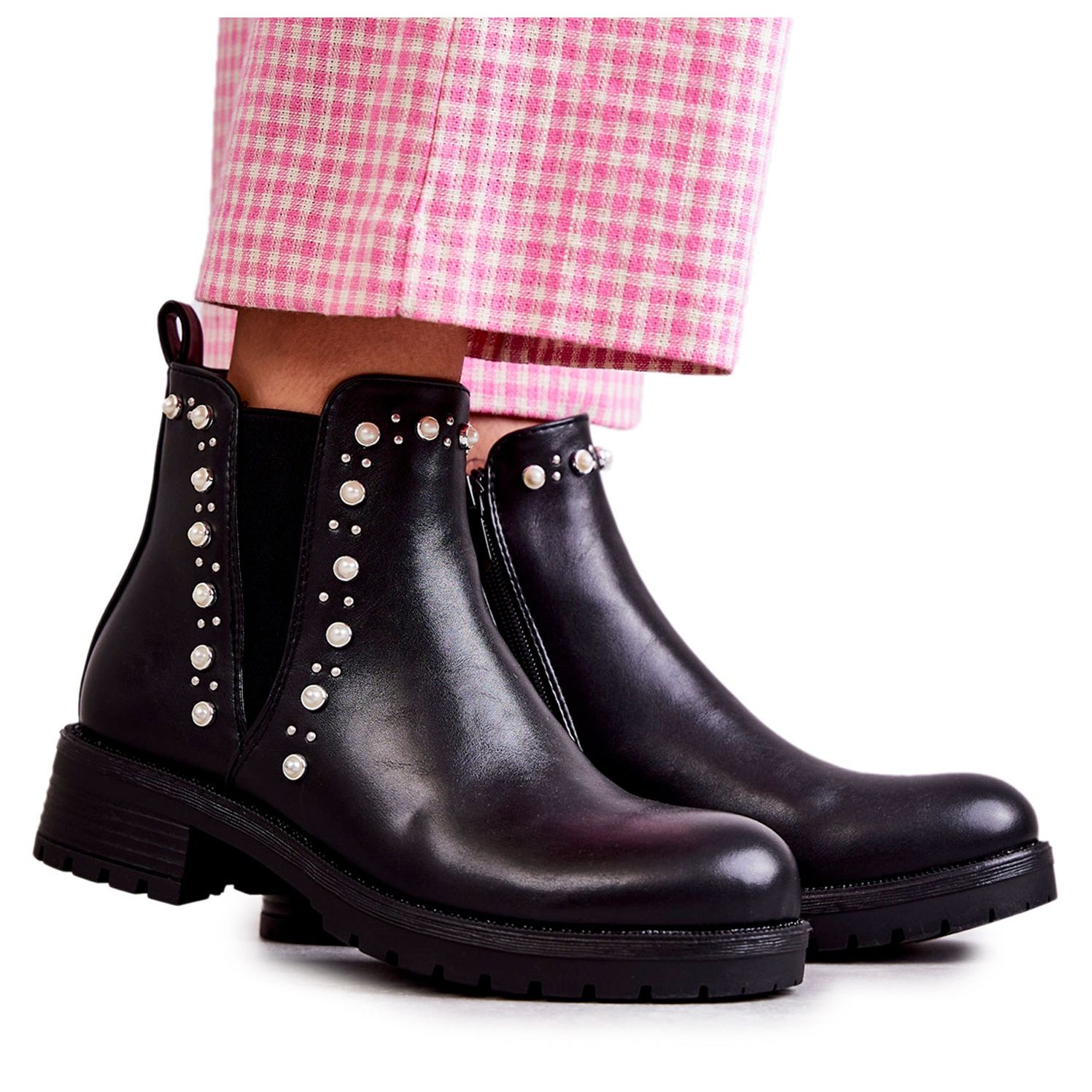 Descubra estilo e conforto únicos com as botas PG1 Leather Workers na cor preta. Estes elegantes botins femininos slip-on são a combinação perfeita de design moderno e praticidade. Feitos de couro ecológico de alta qualidade, eles têm um visual extremamente impressionante, e jatos decorativos e pérolas na parte superior conferem-lhes um caráter único.