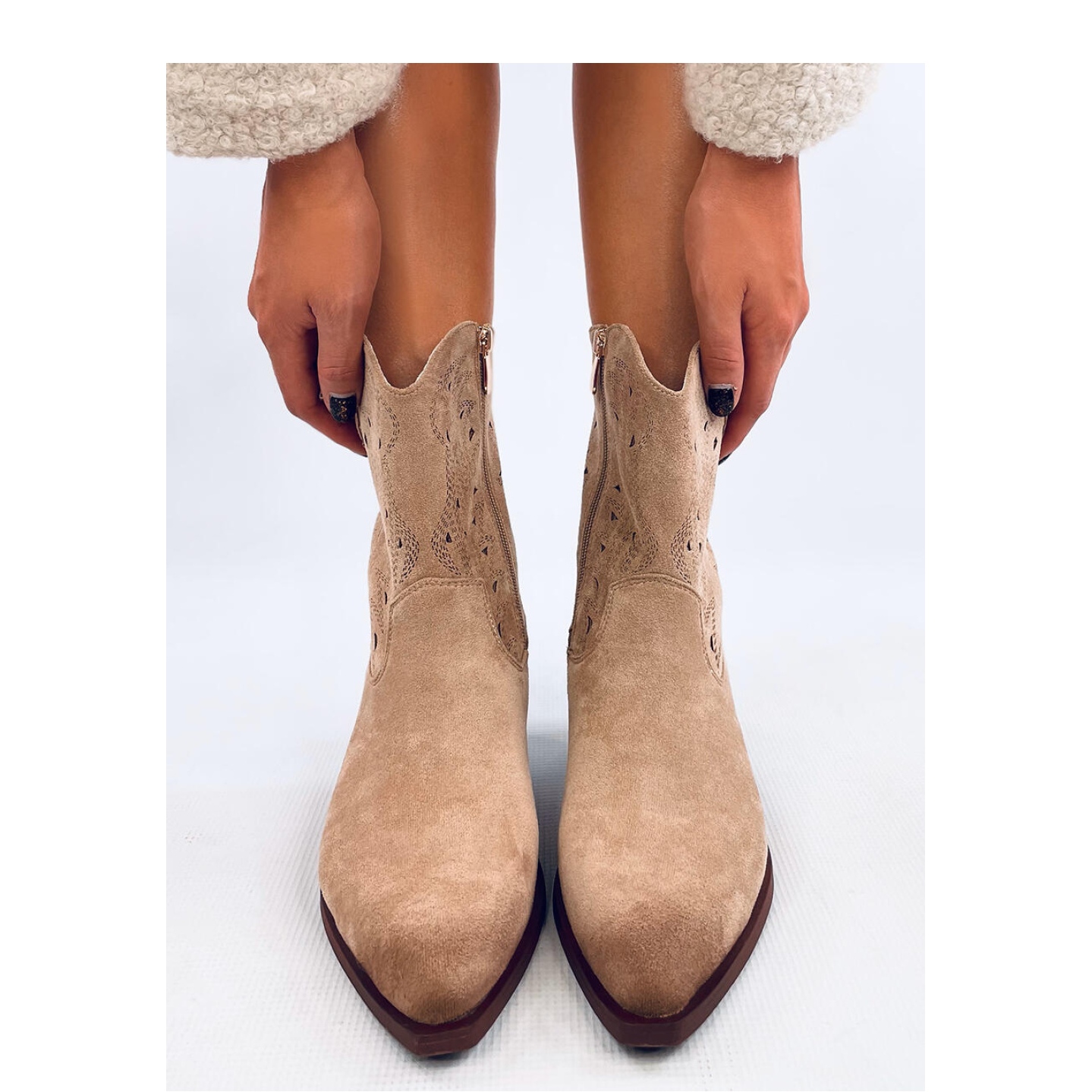 Detalhes: Botas de cowboy bege com aberturas