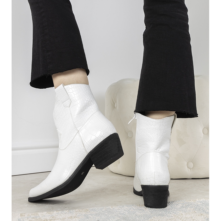 Detalhes: Botas de cowboy brancas no padrão de pele de crocodilo Aurore branco
