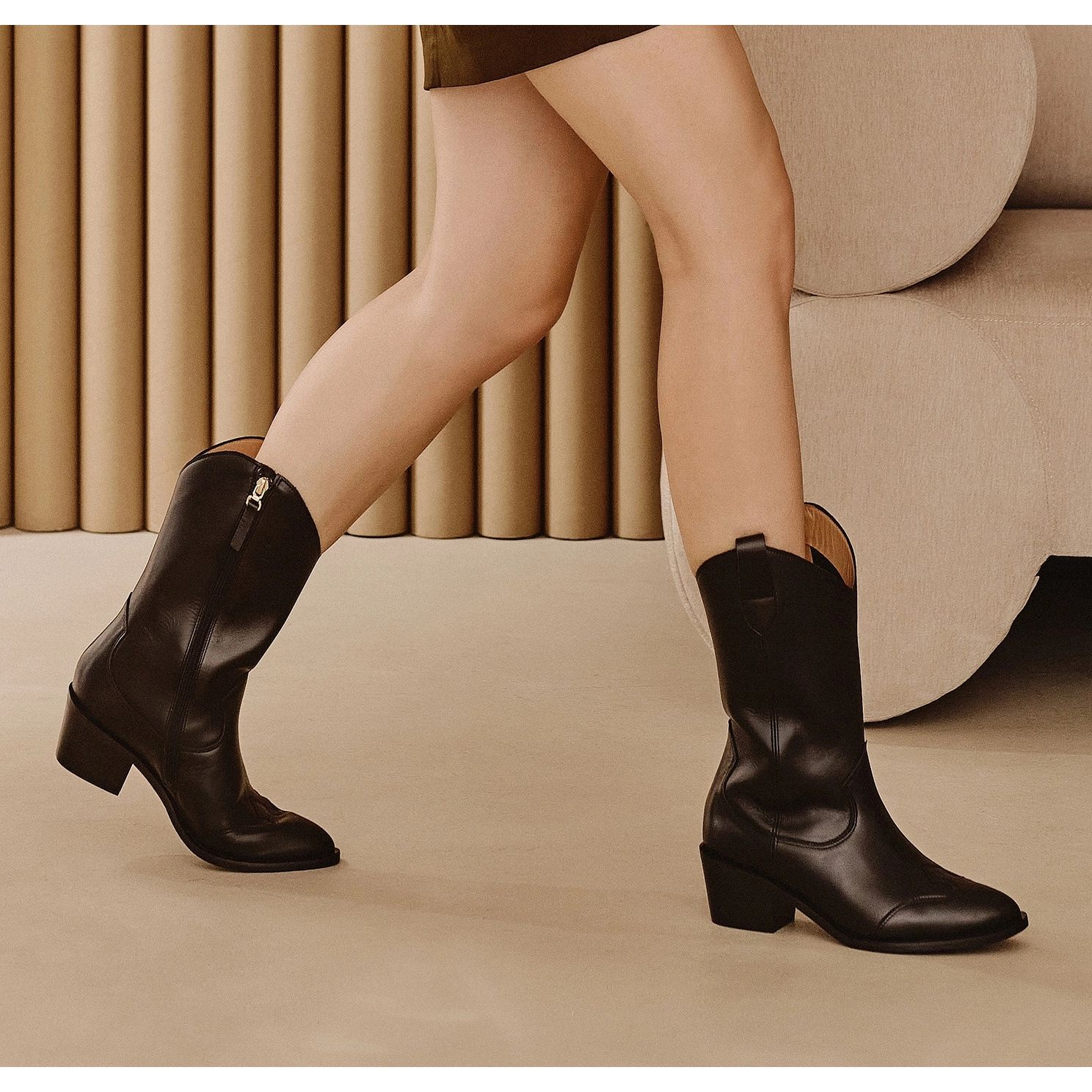 - Cortes de cowboy pretos e clássicos universais se encaixam nas saias, vestidos e jeans.