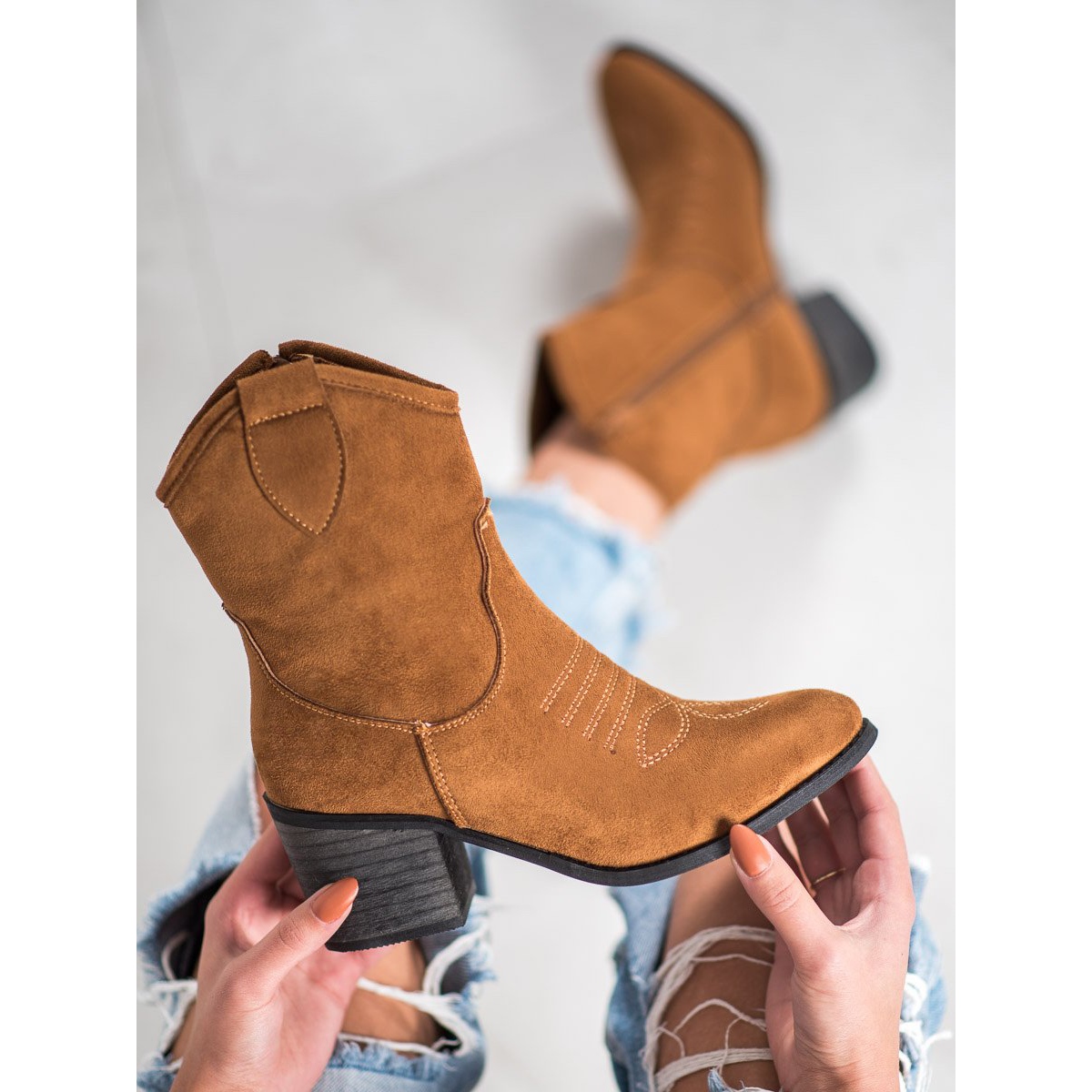 Confeccionadas em couro camurça ecológico, as botas de cowboy Super Mode são ecologicamente corretas e proporcionam conforto de uso excepcional. A parte superior que chega acima do tornozelo ajusta-se perfeitamente à perna e o zíper na parte interna facilita a calçada. Curiosamente, apesar do caráter cowboy das botas, o fabricante focou em um acabamento delicado, o que deixa as botas cowboy extremamente estilosas.