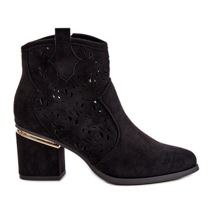 Detalhes: Botas de cowboy perfuradas com salto alto e zíper, Vosilara preta preto