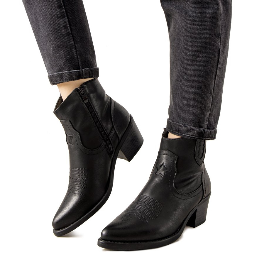 Inna marka Botas de cowboy pretas com um padrão bordado Mustgrow preto