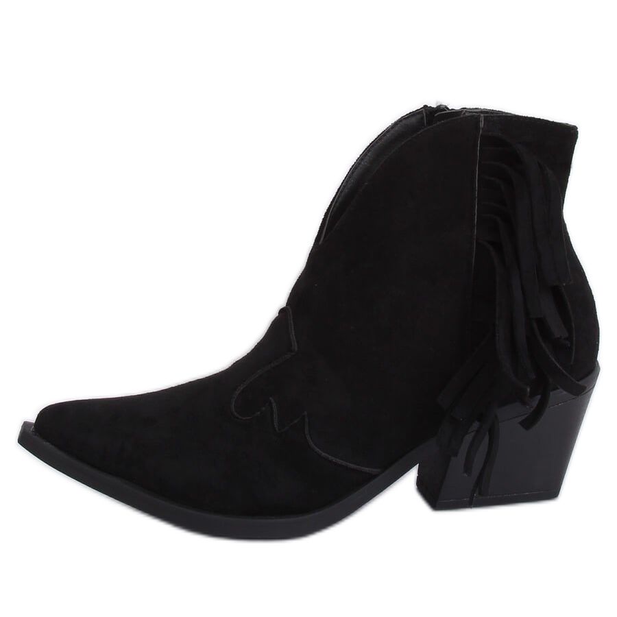 Apresentamos as botas cowboy femininas extremamente elegantes NC999 Black, que são uma escolha perfeita para os dias de primavera. Estas botas pretas com salto largo de 6,5 cm de altura são um verdadeiro sucesso da moda, que se distinguem pelos biqueiras bem torneadas, recortes e franjas impressionantes. Graças a eles, cada estilo ganhará um caráter único.
