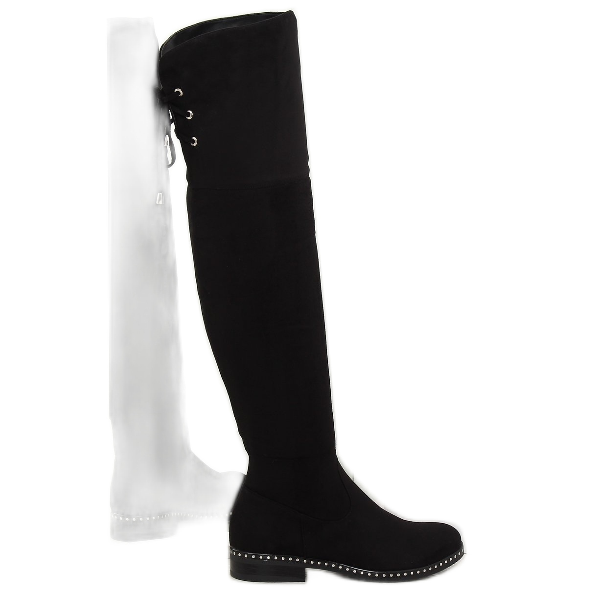 Inna marka Botas de coxa femininas pretas 7538-PG Black preto