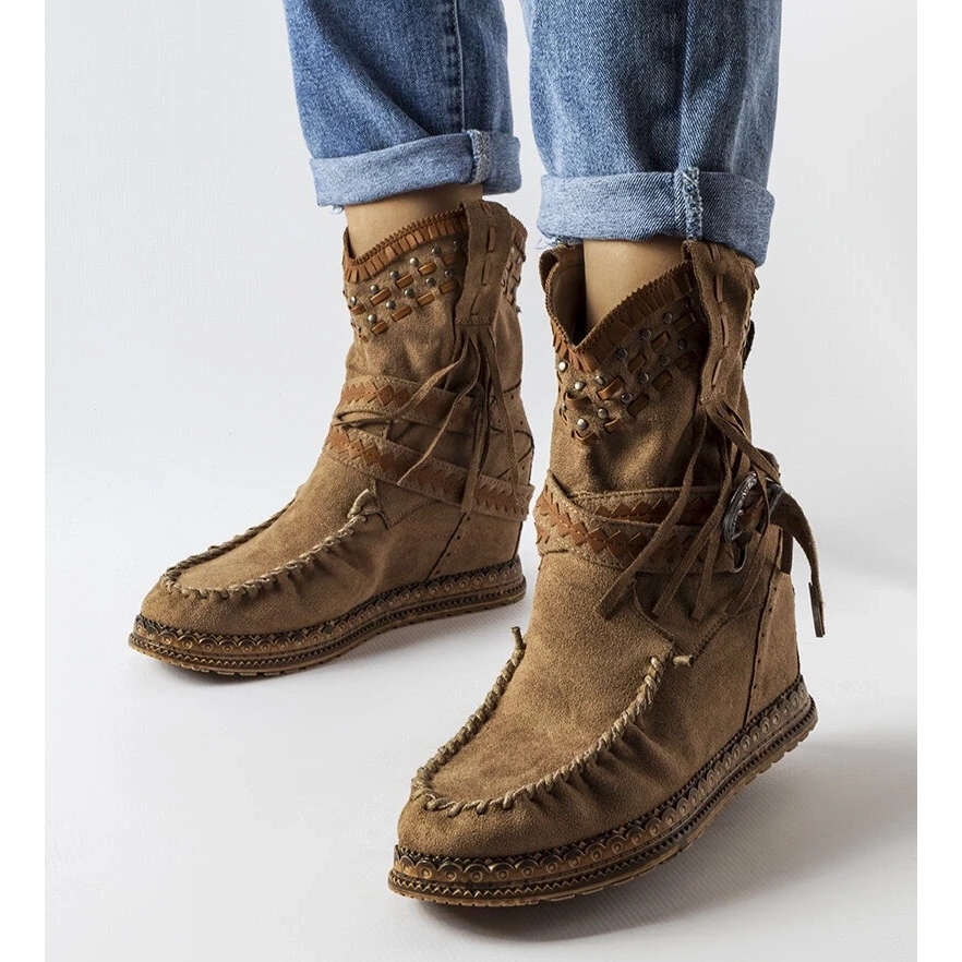 A marca Beausoleil é conhecida por sua atenção aos detalhes e conforto. As botas de cunha marrom escura são um exemplo ideal de uma combinação de estética e conforto - elas ficam ótimas em várias estilizações, enfatizando o caráter individual de uma mulher que as usa. Eles também oferecem suporte adequado para os pés e excelente amortecimento, para que você possa passar o dia todo sem desconforto.
