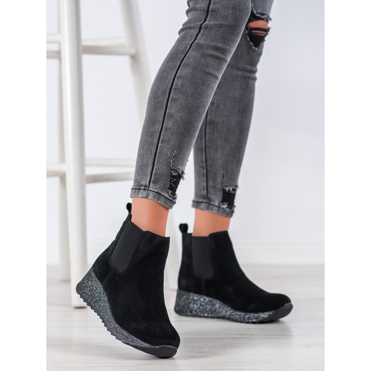 Os botins Filippo Wedge na cor preta são um must-have no guarda-roupa de qualquer mulher. Oferecem uma combinação de conforto, estilo e materiais ecológicos, o que os torna uma escolha atractiva para qualquer ocasião. Não espere, dê aos seus pés o que eles merecem!