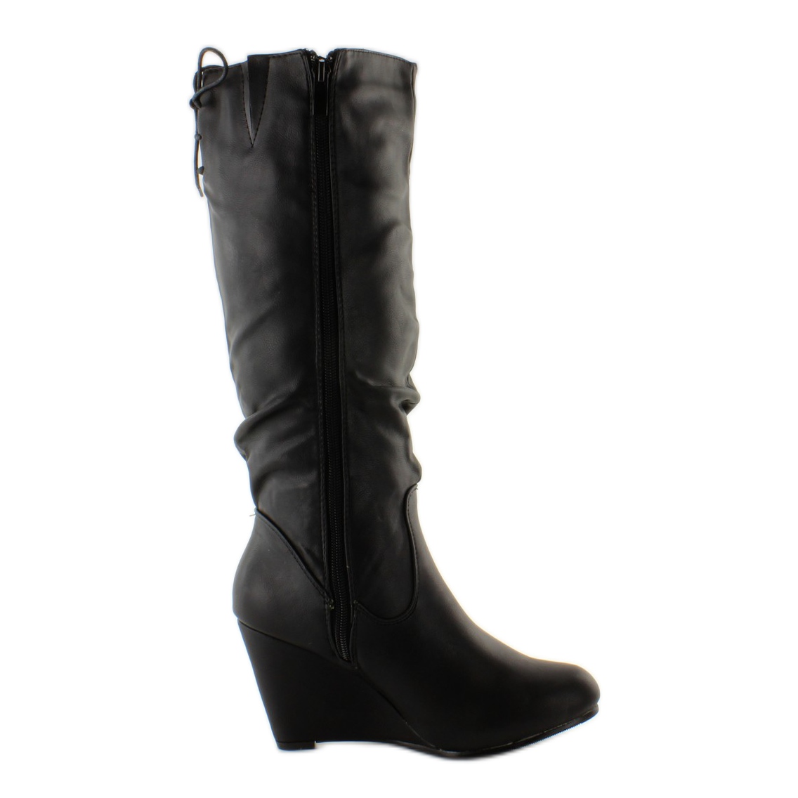 Descubra elegância e conforto em todas as condições graças às clássicas botas de cunha TE003 na cor preta. Estes calçados femininos, confeccionados em couro ecológico de alta qualidade, aliam estilo e funcionalidade. A parte superior suavemente enrugada confere-lhes um caráter único e os dedos redondos garantem conforto de uso.