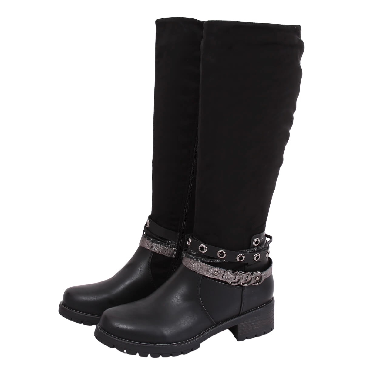 Oferecemos botas exclusivas com protetor da coleção KeeShoes - modelo Z188 Black. Estas elegantes botas femininas combinam estilo clássico e design moderno. Feitos de camurça e couro ecológico de alta qualidade, eles têm uma aparência fenomenal e sua cor preta os torna extremamente universais.