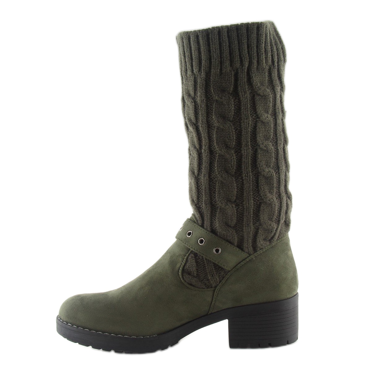As botas com cabedal de fio NC109 na cor verde são a escolha perfeita para mulheres que desejam aliar conforto com design moderno. Esses sapatos exclusivos chegam acima do joelho e sua parte superior é feita de fio macio, o que os torna não apenas elegantes, mas também confortáveis de usar. Graças à possibilidade de puxar a parte superior até ao topo ou com ligeiras rugas, pode alterar livremente o seu aspecto e combiná-los com diferentes estilos.