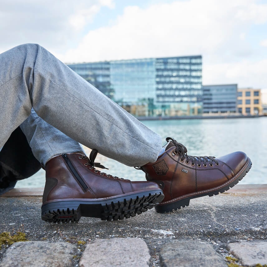 As botas de inverno impermeáveis marrons Rieker F3602-25 isoladas com lã de ovelha são a escolha de homens que valorizam alto conforto de uso, durabilidade e estilo em um só. São perfeitos para viagens de inverno às montanhas, longas caminhadas, bem como para o uso urbano diário.