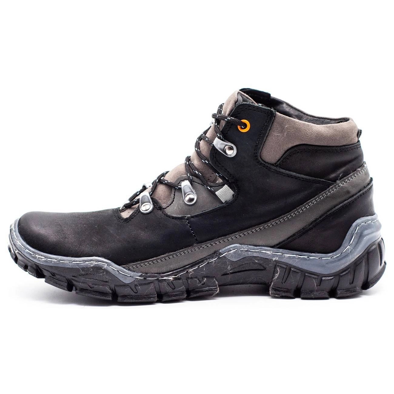 Sapatos de inverno clássicos e sólidos para homens que procuram conforto e durabilidade. Eles alcançam o tornozelo, têm isolamento de lã natural, graças ao qual fornecem conforto térmico nos dias mais frios. A parte superior feita de couro natural em preto elegante com detalhes em cinza discretos, acabados com loops de cinto prateado e laço clássico. A sola plástica de alta qualidade recauseada garante uma certa etapa nas superfícies escorregadias.