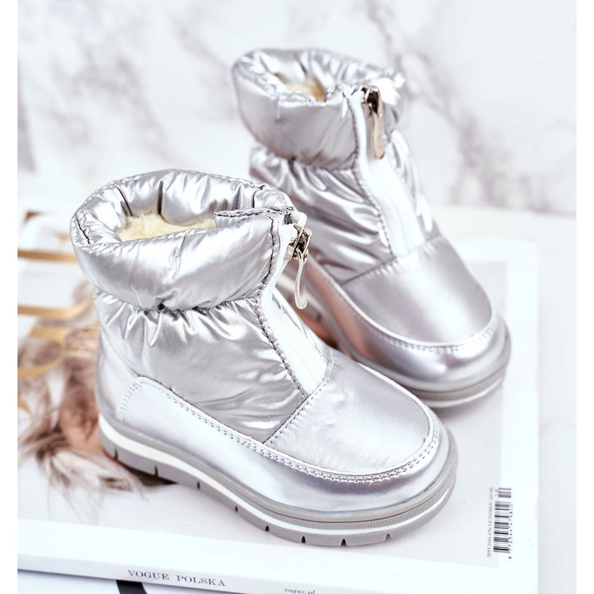 Apresentamos as botas de neve infantis WEESTEP, que serão a companhia perfeita nas aventuras de inverno do seu filho! Estas botas prateadas não são apenas atraentes na aparência, mas acima de tudo, excelente qualidade e conforto. O interior do calçado é forrado com lã natural, que proporciona um calor agradável mesmo nos dias mais frios.