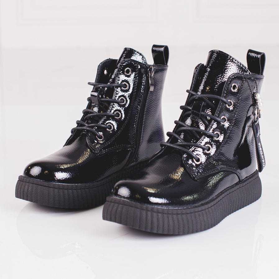 SHELOVET Botas de menina de couro envernizado na plataforma Shelovet preto