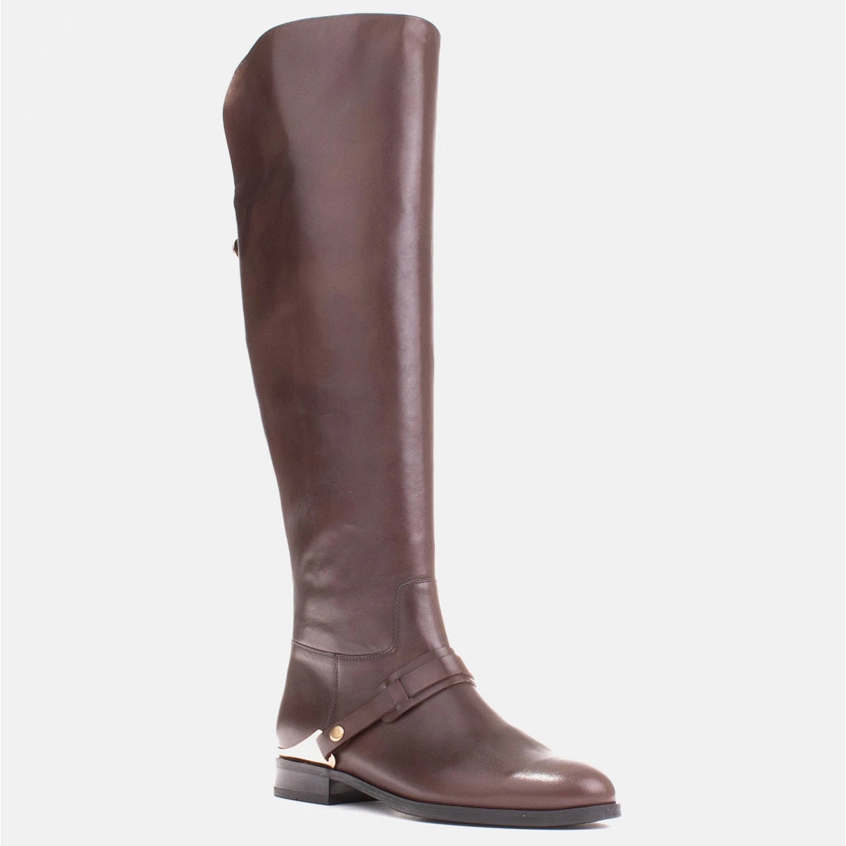 Detalhes: Marco Shoes Botas de montar de couro com placa de ouro castanho