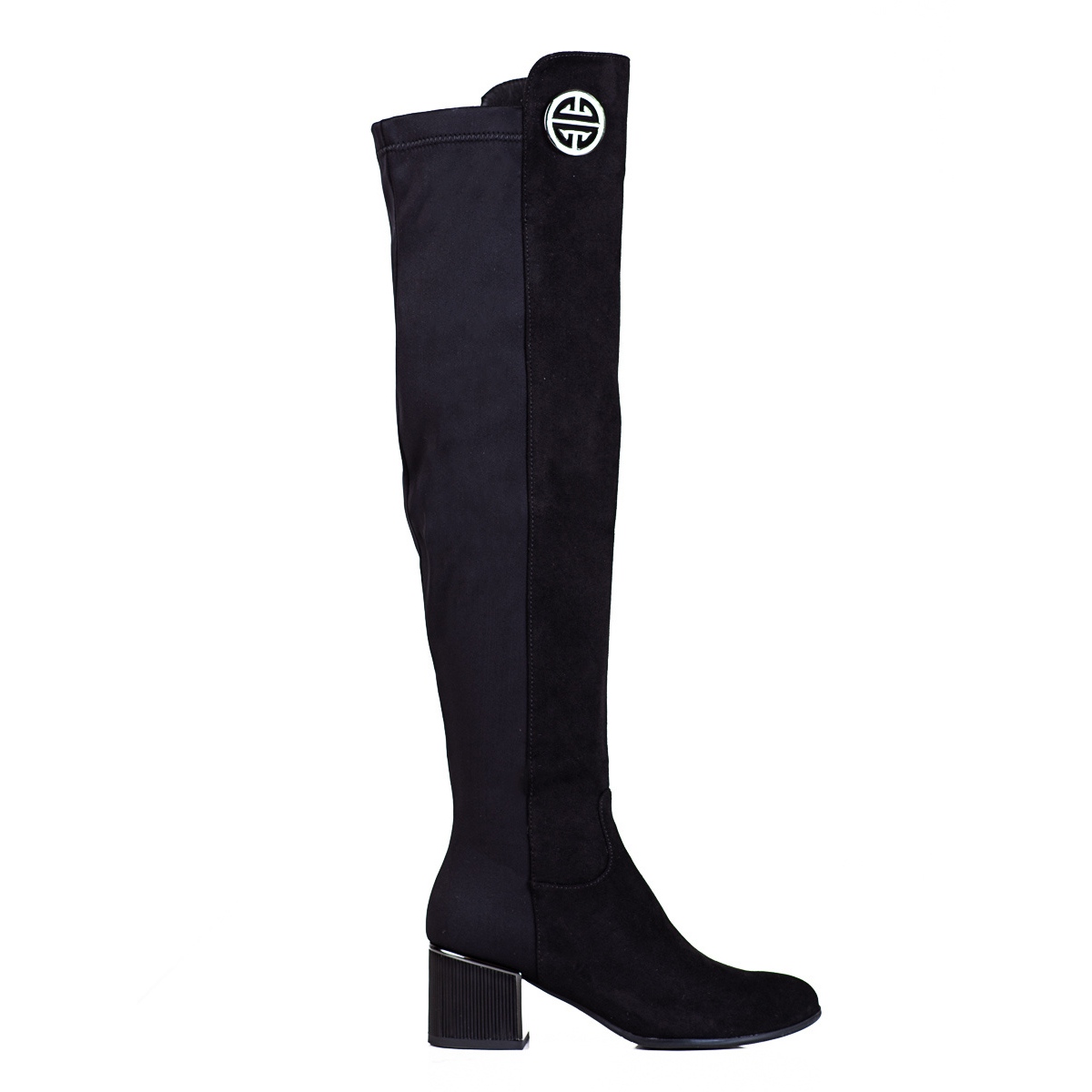Descubra a elegância com as botas pretas acima do joelho Shelovet para mulher, que serão um complemento perfeito para o seu guarda-roupa de outono e inverno. Estes sapatos estilosos, confeccionados em couro camurça ecológico de alta qualidade e material têxtil macio, proporcionam conforto e elegância tanto para passeios noturnos quanto para celebrações.