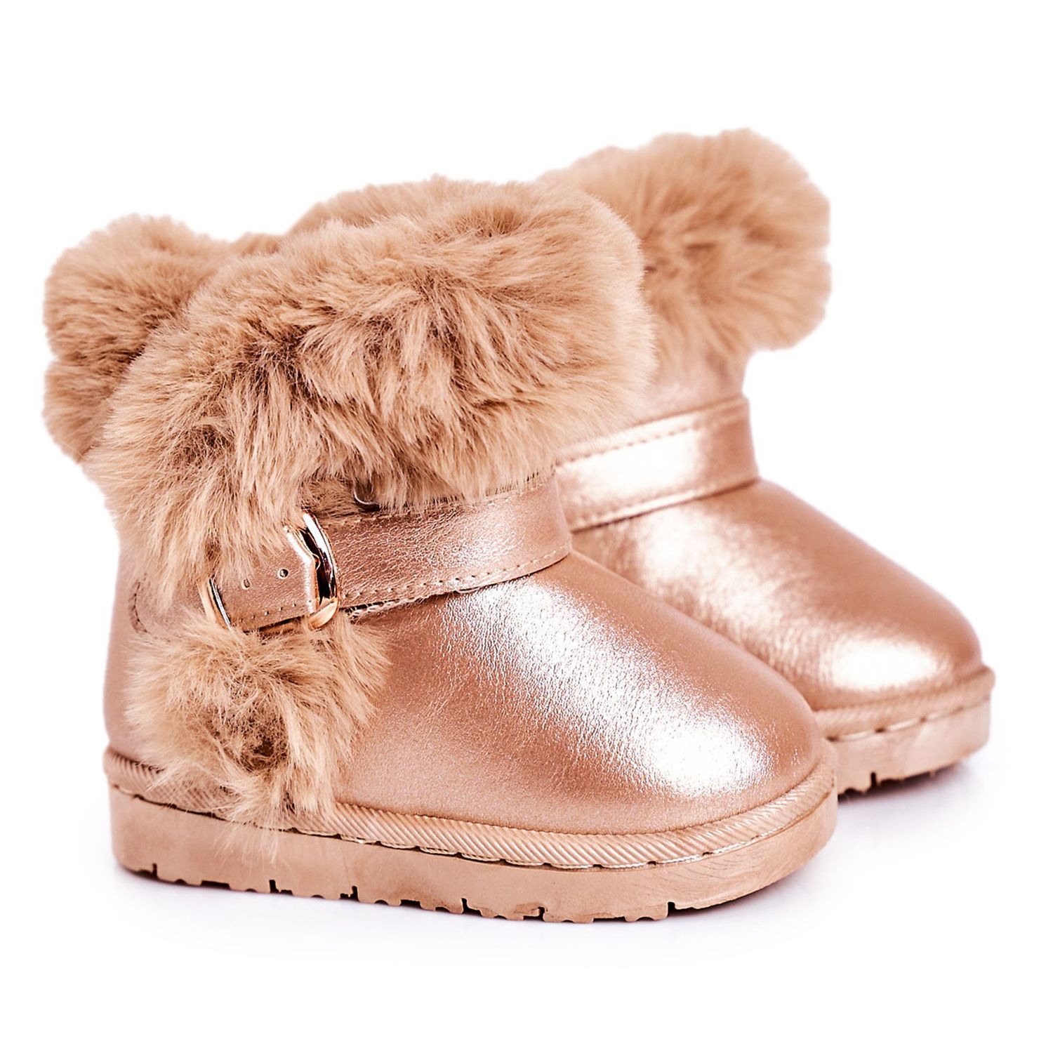 FRROCK FRROCK Botas de neve aquecidas para crianças com gelatina de pele rosa e ouro