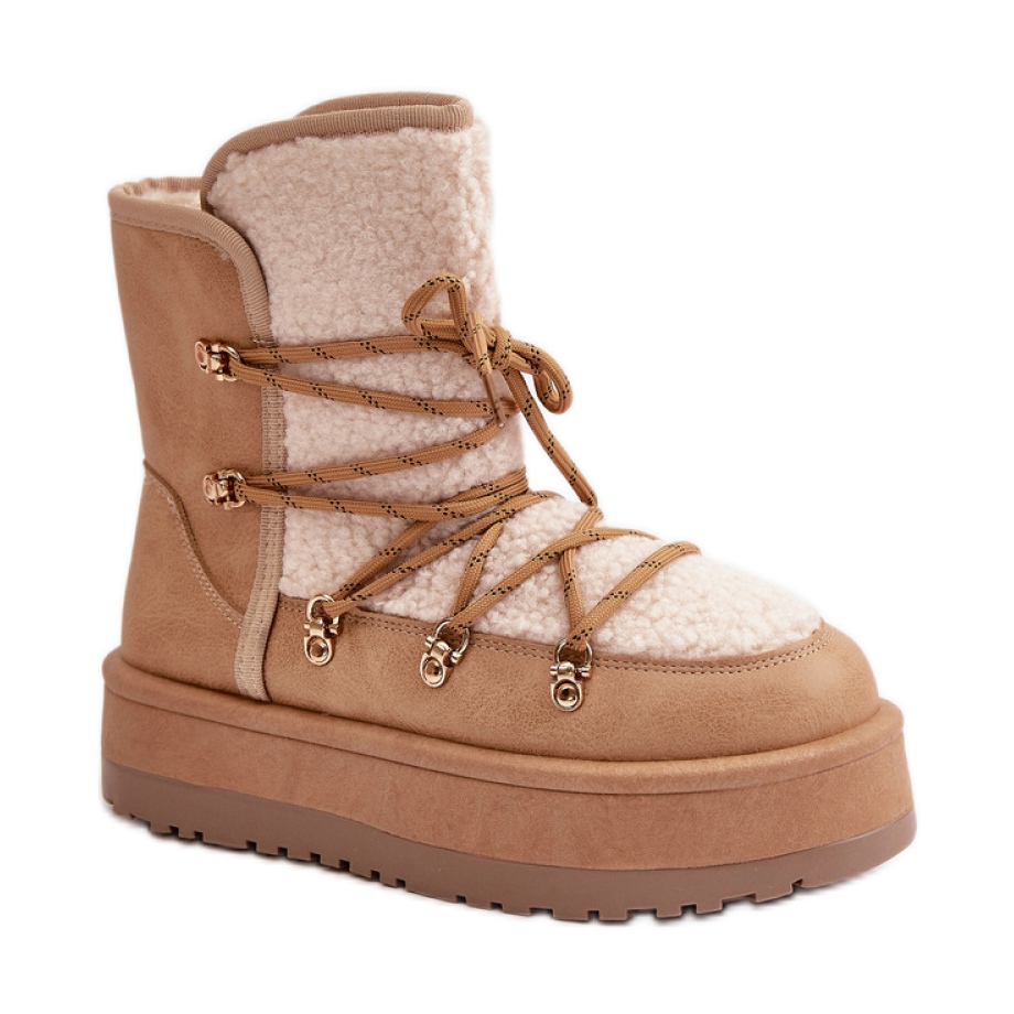 Descubra as botas de neve marrons únicas marrom claro, que se tornará um elemento inseparável do seu guarda -roupa de inverno! Os sapatos desses mulheres em uma plataforma enorme com uma altura de 5 cm garantem excelente isolamento de um terreno frio, graças à qual você se sentirá confortável com cada etapa, mesmo durante os dias mais frios.