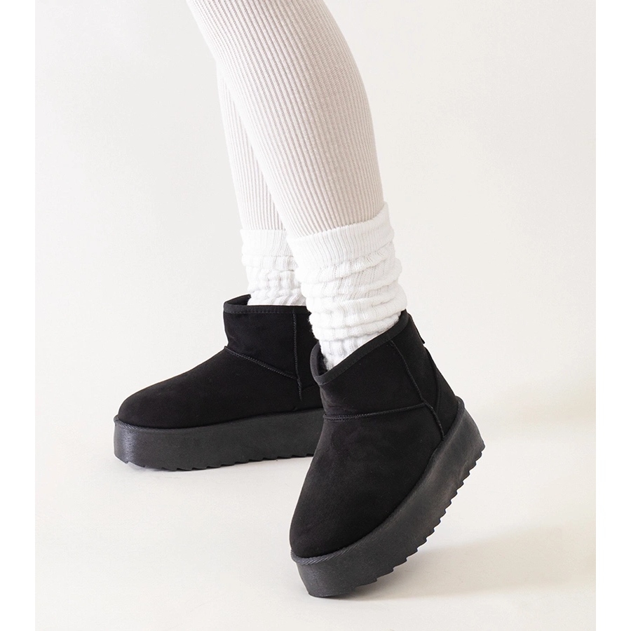 Botas de neve casuais pretas em uma plataforma de alta táisa são uma ótima opção para mulheres que desejam combinar moda com conforto nos dias de inverno. Essas botas de neve, feitas de couro de camurça ecológica de alta qualidade, fornecem não apenas calor, mas também uma aparência elegante. Seu design inserido os torna extremamente práticos e fáceis de usar, o que os torna uma solução ideal todos os dias.