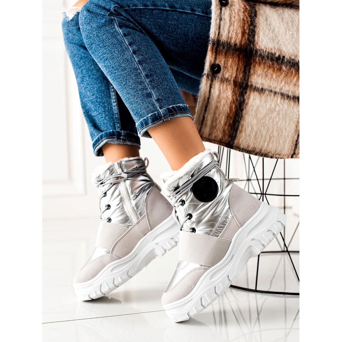Detalhes: TRENDI Botas de neve casuais prata cinza