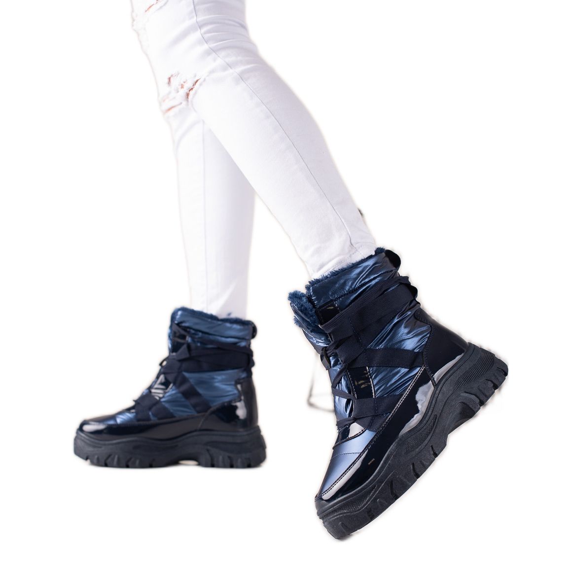 **Botas de neve brilhantes azul marinho TRENDI – escolha perfeita para os dias de inverno**