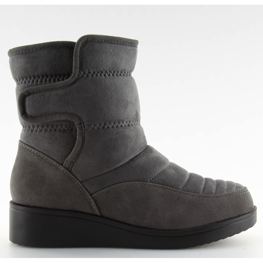 Botas de neve femininas modernas e confortáveis em tom cinza universal - perfeitas para os dias mais frios. Confeccionados em camurça ecológica, com isolamento macio em pele de carneiro, combinam o conforto térmico com uma construção leve e um prático fecho de velcro.