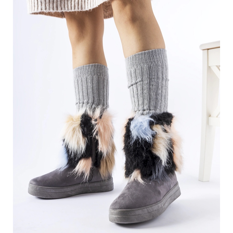 Detalhes: Botas de neve com isolamento cinza e pele da Cordero