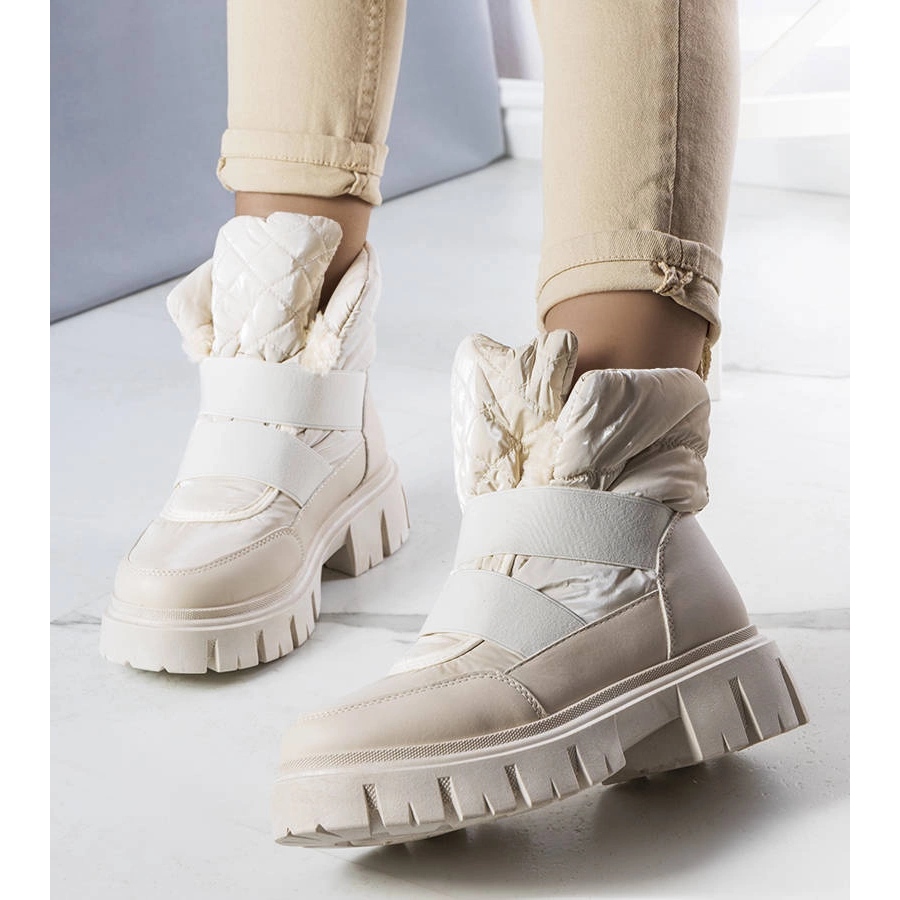 Botas de neve femininas de Francisco elegantes e confortáveis na cor bege universal. O modelo SG-175 é uma proposta para o outono/inverno, isolado pela temporada, com pêlo espesso, com uma plataforma estável e alta que fornece excelente isolamento de terreno frio e conforto durante longas caminhadas.