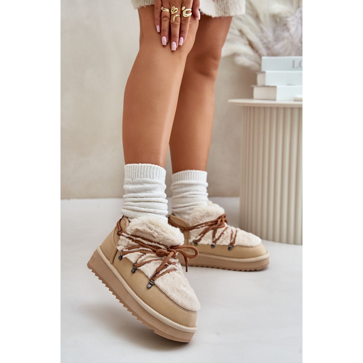 Detalhes: Botas de neve com plataforma baixa e pele D.Franklin DFSH370011 Bege