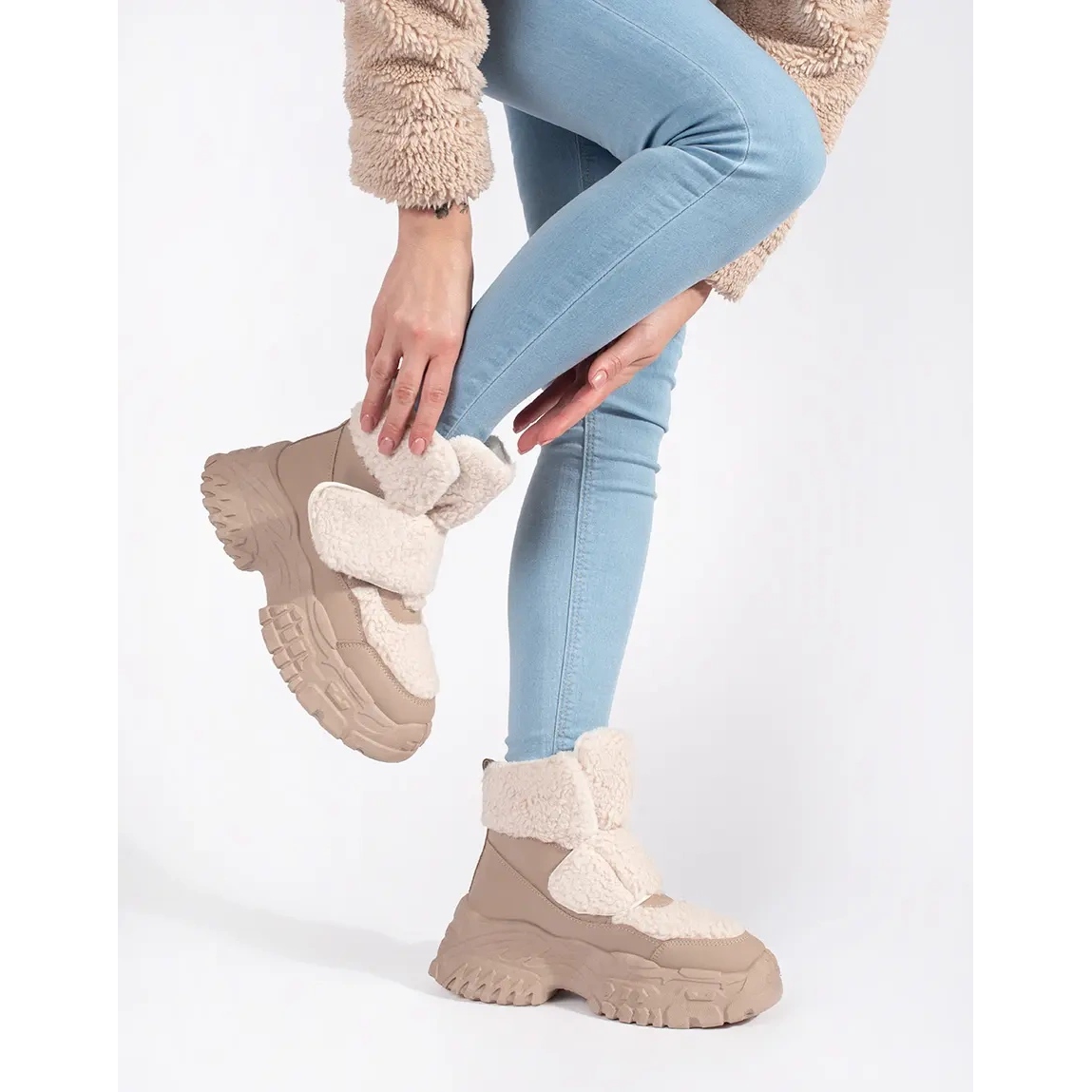 Detalhes: Seastar Botas de neve com plataforma bege e pele de tosquia