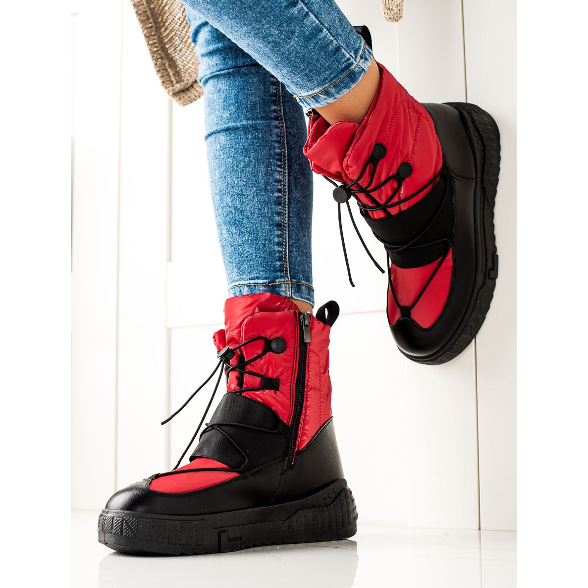 Detalhes: TRENDI Botas de neve confortáveis na plataforma preto vermelho