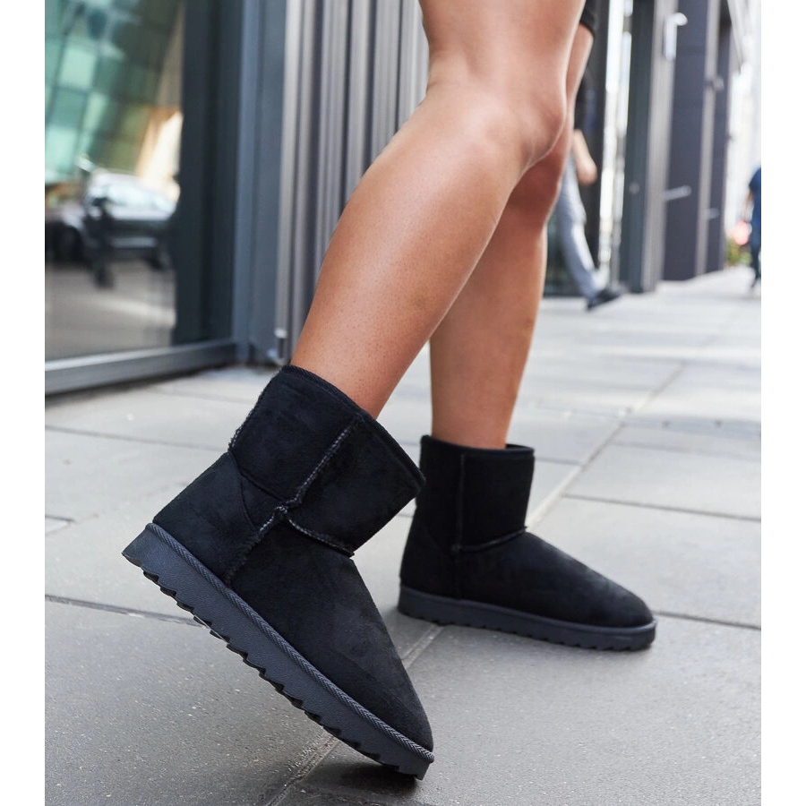 Moderno, confortável e funcional-essas botas de neve pretas são obrigatórias em dias frios. Feito de couro ecológico de camurça, com aquecimento e pêlo macio por dentro, eles oferecem conforto térmico durante caminhadas de inverno e atividades diárias. Uma plataforma de borracha, sola da moda e 3 cm adiciona estabilidade e caráter urbano, e a estrutura deslizante faz com que os sapatos sejam colocados facilmente.