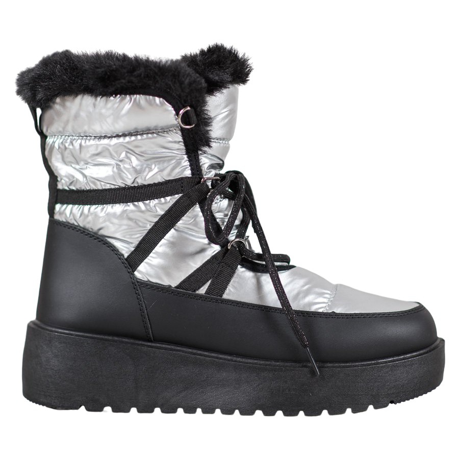 Detalhes: Bella Paris Botas de neve da moda prata cinza