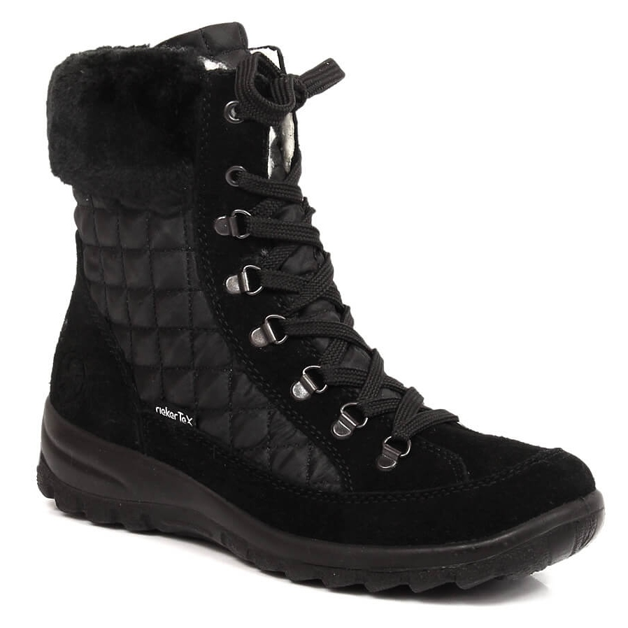 Detalhes: Botas de neve de couro impermeáveis para mulher Rieker L7141-00 preto